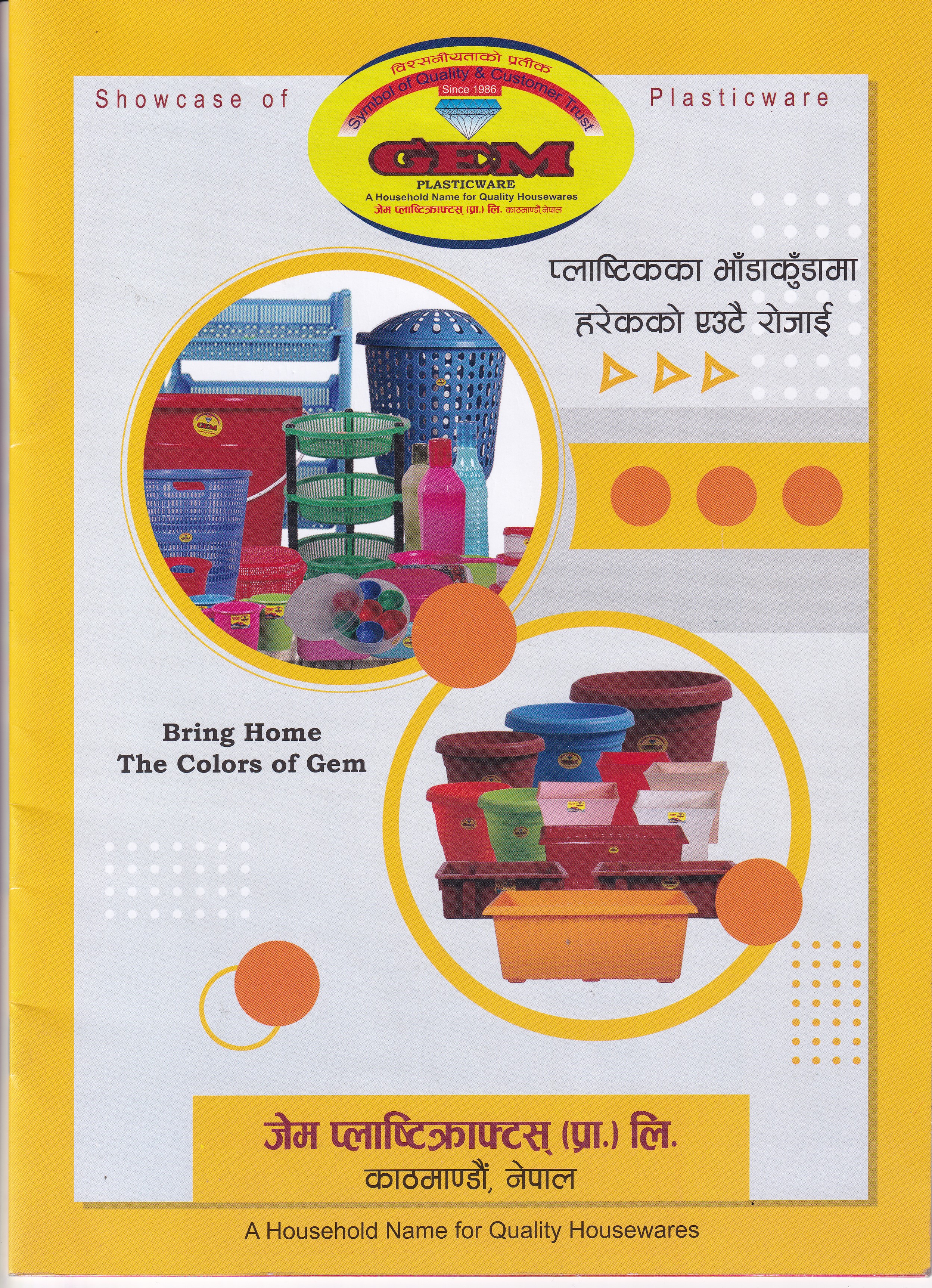 Gem Plastic is a well-established plasticware company located in Nepal. Since its inception, the company has earned a solid reputation for its exceptional quality products, innovative designs, and exceptional customer service. With an extensive range of plastic products including household essentials such as containers, buckets, and hangers, flowering pots, and other household items, Gem Plastic offers a wide variety of options to suit every requirement. Our products are manufactured using premium quality materials, and are engineered to be durable, reliable, and long-lasting. In line with its commitment to sustainability, Gem Plastic utilizes eco-friendly materials and energy-efficient production methods to minimize waste and reduce its carbon footprint. Gem Plastic is continually expanding its product range to meet evolving market needs and is a trusted partner for all your plasticware needs.
